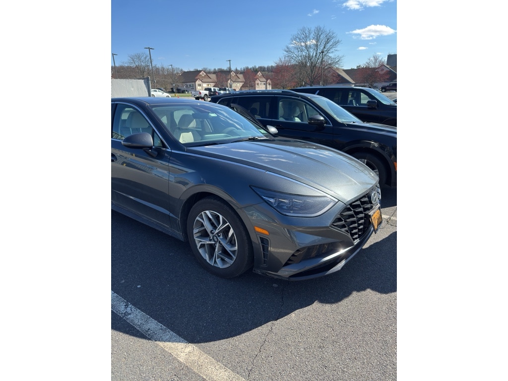 Protect this Hyundai Sonata from unwanted accidents with a cutting edge backup camera system. This Hyundai Sonata offers Apple CarPlay for seamless connectivity. You'll never again be lost in a crowded city or a country region with the navigation system on this unit. This model comes equipped with Android Auto for seamless smartphone integration on the road. Start the vehicle from inside with remote start. This vehicle offers Automatic Climate Control for personalized comfort. This vehicle is a certified CARFAX 1-owner. Bluetooth technology is built into this mid-size car, keeping your hands on the steering wheel and your focus on the road. Our dealership has already run the CARFAX report and it is clean. A clean CARFAX is a great asset for resale value in the future. Quickly unlock this model with keyless entry. This Hyundai Sonata emanates grace with its stylish gray exterior. Set the temperature exactly where you are most comfortable in it. The fan speed and temperature will automatically adjust to maintain your preferred zone climate.