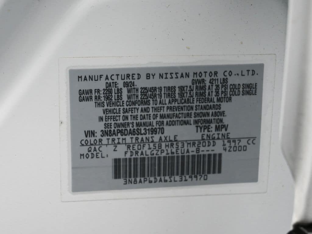 This unit comes equipped with Android Auto for seamless smartphone integration on the road. This Nissan Kicks offers Apple CarPlay for seamless connectivity. The vehicle keeps you comfortable with Auto Climate. See what's behind you with the back up camera on this small suv. This vehicle is a certified CARFAX 1-owner. Our dealership has already run the CARFAX report and it is clean. A clean CARFAX is a great asset for resale value in the future. Set the temperature exactly where you are most comfortable in this 2025 Nissan Kicks . The fan speed and temperature will automatically adjust to maintain your preferred zone climate. The Nissan Kicks features cruise control for long trips. The Electronic Stability Control will keep you on your intended path. It has a 4 Cyl, 2.0L high output engine. This vehicle's Forward Collision Warning feature alerts drivers to potential front-end collisions. Front wheel drive on it gives you better traction and better fuel economy. The Nissan Kicks is equipped with a gasoline engine. Bluetooth technology is built into the Nissan Kicks, keeping your hands on the steering wheel and your focus on the road. The leather seats in this small suv are a must for buyers looking for comfort, durability, and style. The rear parking assist technology on this unit will put you at ease when reversing. The system alerts you as you get closer to an obstruction. The perfect balance of space and size. this Nissan Kicks cruises through the city with ease. This 2025 Nissan Kicks shines with clean polished lines coated with an elegant white finish.